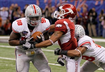 No Huddle- The no huddle offensive game plan was a thing of beauty. I had to rub my eyes a few times to convince myself that it was still Jim Tressel on the sideline. Not only did it catch Arkansas off guard but it was also highly successful in the first half. Whatever plodding and methodical offense that the Hogs viewed on tape for the last month was light years away from they saw on Tuesday. Terrelle Pryor found open receivers all over the field which in turn opened scrambling lanes and huge holes for Boom to run through. The new wrinkle was responsible for 28 points in the first half which was more points scored than any other OSU squad in an entire Sugar Bowl. I am not sure OSU has the personnel, or coach for that matter, to run this type of offense more than once in a blue moon but it worked wonders on this night.